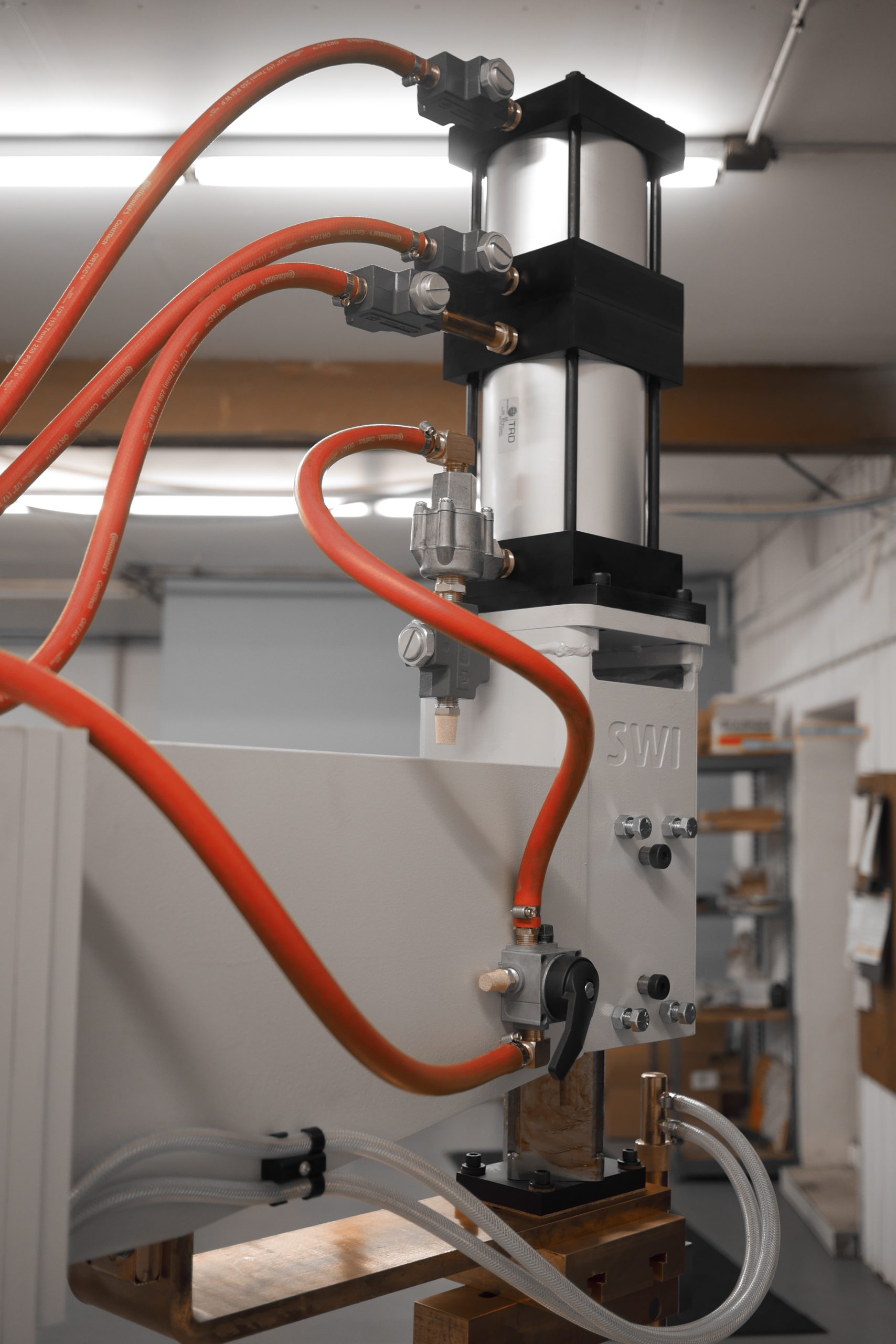 - 8″ (203mm) bore air cylinder, generating 5000lbsf @ 100PSI (2200daN @ 7bar)