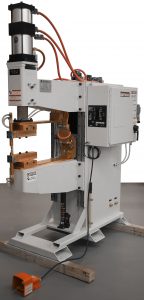 The main difference with the Press Spot welders vs the Projection style welders is the lower knee. A spot welder traditionally has a round lower arm, whereas a projection welder has a box-construction lower knee for mounting tooling and fixturing. It is common to mount t-slot platens to a projection welder to enable quick change-over of tools. Ever seen t-slot platens on a vertical mill or a drill press? This suits the same purpose.